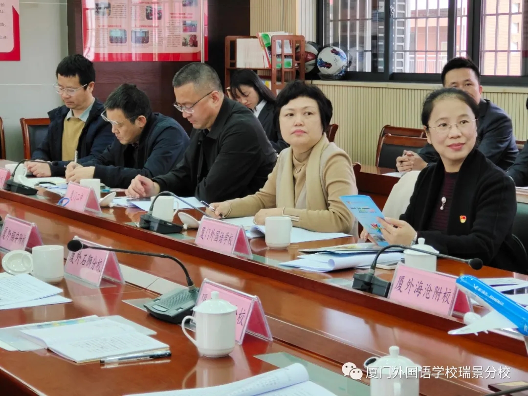 2021年1月6日,厦门外国语学校合作办学研讨会在厦门外国语学校瑞景分校五楼会议室隆重举行。来自厦门外国语学校总校,厦外海沧附校、厦外湖里分校、厦外翔安附校、厦外集美分校、厦外石狮分校、厦外瑞景分校、厦外二中鼓浪屿合作校、厦外翔城分校共八个合作校的校领导及中层领导近30人参与此次合作办学研讨会。