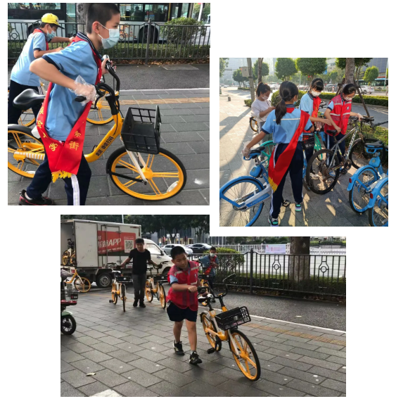 沿路上歪七扭八的共享单车在队员们的细心配合都变的整整齐齐,碰到小黄车的工作人员来放置新的小黄车,“红领巾”就主动上前帮忙放到正确位置,工作人员表扬:“谢谢你们!太感动了。”