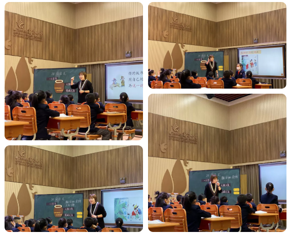 林老师从看图猜故事入手,切入到小古文《司马光》的教学,一下子调动了学生们参与课堂的积极性。接着在书声琅琅中,引导学生读好古文;然后指导学生习得方法,借助注释和插图,读懂古文;最后和孩子们一起趣读古文,拓展阅读。