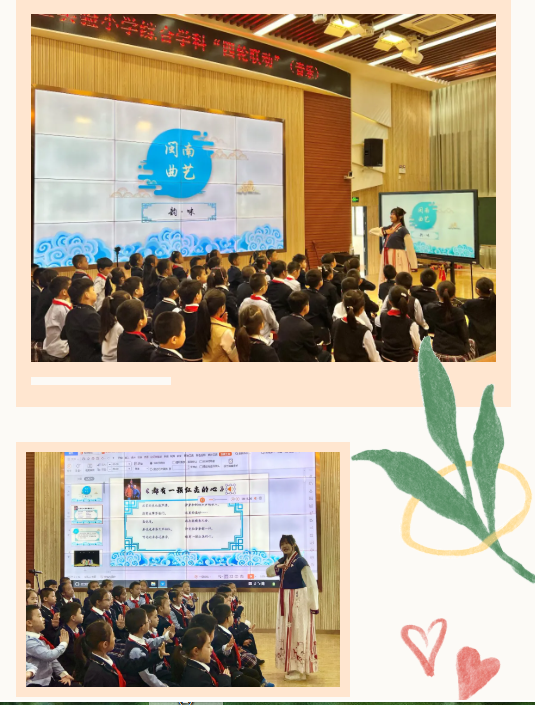 展城校区张星老师:以后我们可以往“大单元”方向去做,更系统地做成一个南音单元。在课本中是没有南音的课程,所以今天在这个“初体验”课堂中,方老师从二年级下册《红灯记》拓展到南音,让孩子们感受并喜欢南音,感受其韵味,体现老师对中华之粹传承使命的认同感。选择的南音片段《直入花园》是用闽南语演唱,是具有难度的,华玲老师采用中国“口口相传”的方式是很好的,让孩子能一字一句都能得到引导。