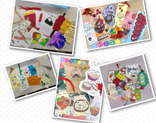 二年级小朋友的手作书签,中国传统食物与英文字母的趣味碰撞,每一张都是独家专属。