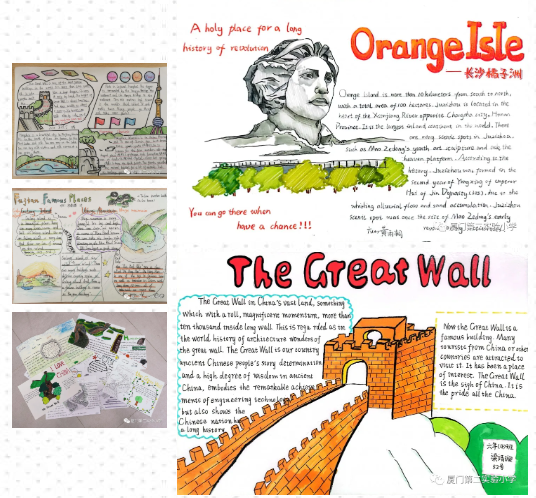 中国的名胜古迹数不胜数,哪一处最让你引以为豪呢?六年级的同学将自己最喜爱的景点用英文手抄报的形式进行介绍。