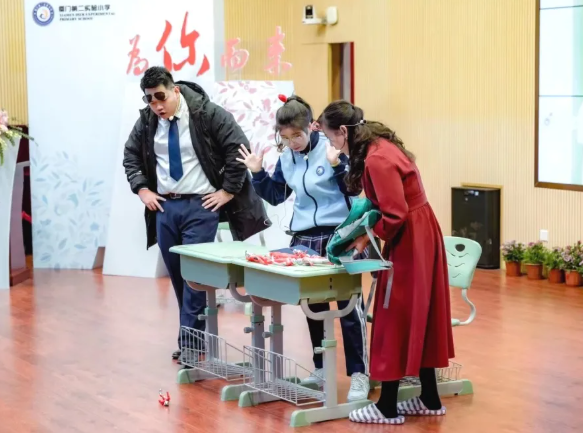 厦门第二实验小学老师自编自导自演的小品《平行宇宙》开场,幽默生动的表演夸张地还原了一幕幕教师、学生、家长之间日常生活的真实场景,引发大家对“读懂学生”的思考。