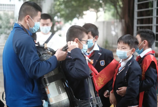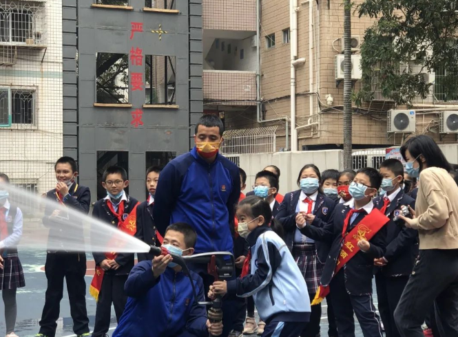 消防战士还现场展示了他们平时的训练活动,孩子们纷纷用掌声对他们致以最崇高的敬意。