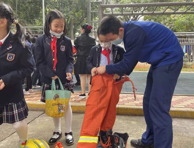 来到消防器械区,消防员叔叔用浅显易懂的语言对各类消防器械及防护工具进行了详细的讲解,让孩子们对消防有了更加直观深入的了解。