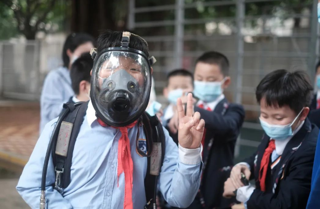 在消防员叔叔的指导下,孩子们头戴防护头罩,穿上厚重的防护服和防护靴,背着沉甸甸的氧气罐,体验了一回“最美英雄”小小消防员。当得知不论严冬还是酷暑,消防战士出险时都必须穿着一整套厚重的防护服装时,孩子们不由得心生敬意,眼中流出敬佩之情。