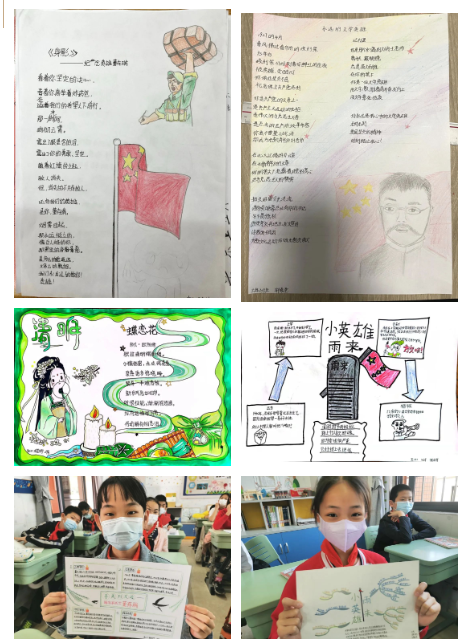 追寻先烈足迹,传承红色基因。高年级同学最近的语文学习恰逢与革命先烈有关。因此,假期里他们透过大量的资料、文学作品或者影视作品,深入寻访革命先烈们的足迹,用思维导图呈现英雄生平或创作小诗等方式来缅怀先烈。