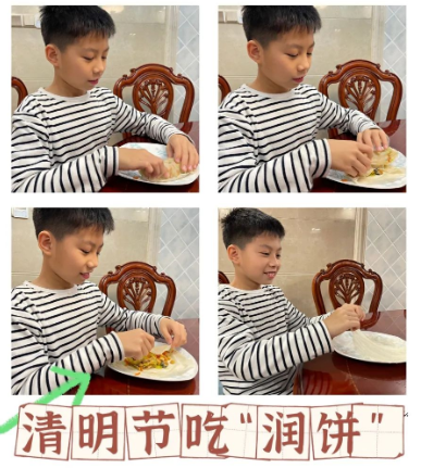 清明节的习俗有哪些?清明节期间,人们都吃哪些食物?为什么要吃冷食?为什么要在清明前后种瓜点豆?……这些问题都难不倒二实小的孩子。假期里,低年级的学生和家人们来了一场亲子共读,在绘本《中国记忆——清明节》中解密清明习俗,体会传统文化的力量,争当清明习俗讲解员。