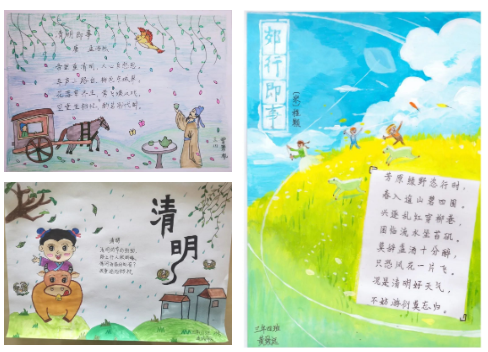 纵观中国文学史上,与清明节有关的古代诗词丰富多彩。唐代诗人杜牧一首《清明》道不尽的伤心欲绝,悲思愁绪。清明诗词你还知多少?中年级的少先队员们广搜经典,赋予诗词新生命。有的挥墨寄情思,一手书法妙不可言;有的拿起手中画笔,为清明诗词锦上添花。