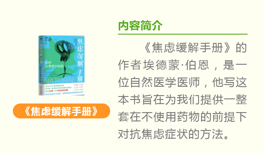 亚宸妈妈通过阅读这本书,给我们带来了这本书提供的一些对抗焦虑症状的方法: