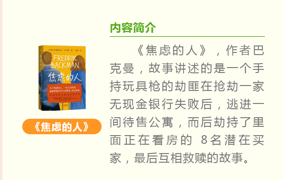 紫嫣妈妈通过阅读分享这本书,让我们看到一件件伤心伴随暖心的故事,一个个各自焦虑却彼此治愈的“陌生人”。虽然故事开头让人一头雾水,但随着故事的慢慢展开,人物悉数登场,最后你会捂着小心脏,满心幸福地发现,这是一个关于一群“傻瓜”互相救赎的故事。爱与温情在每个故事里环绕,宽恕与希望在故事人物中流淌。最终,九个焦虑的人,一场人质劫持,这次能解救他们的不是警察,而是彼此。