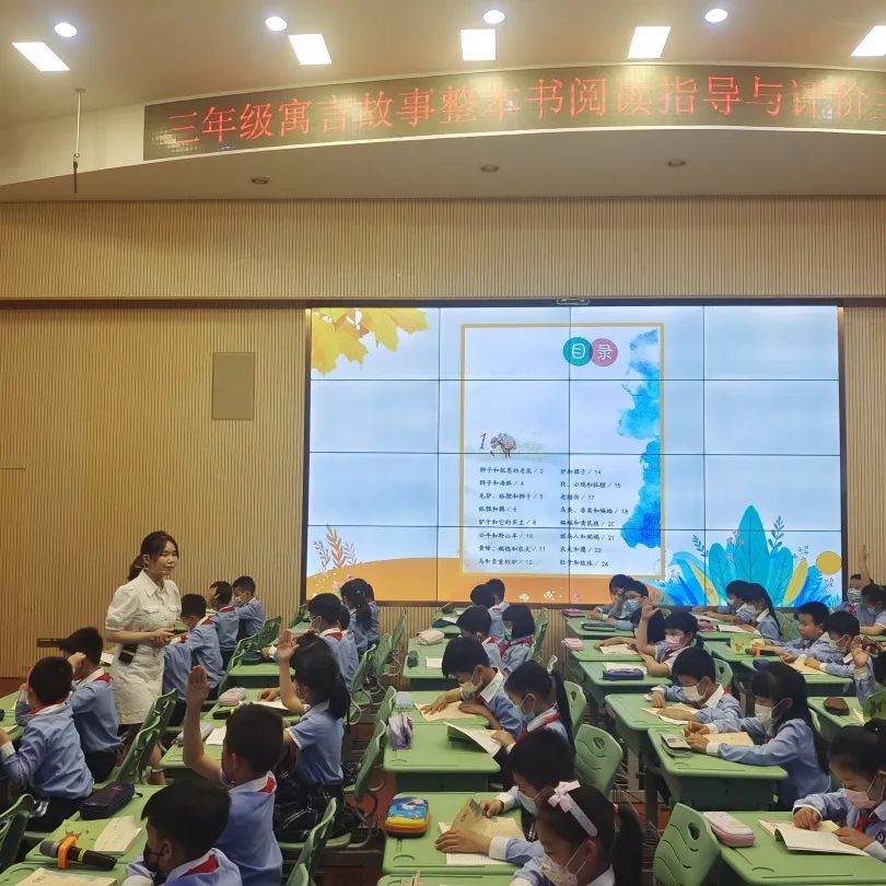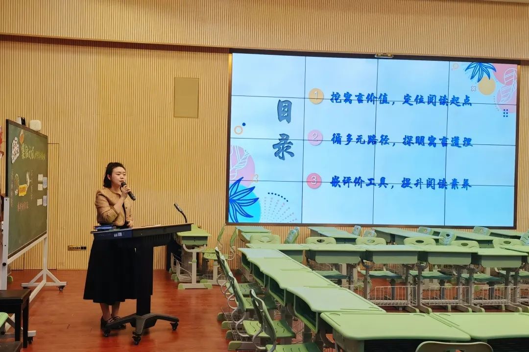 伴随着暮春的和煦暖阳,4月14日下午,总分校语文组全体老师相聚展城分校二楼梯形教室,共同开展主题为“三年级寓言故事整本书阅读指导与评价”的四轮联动研讨活动。