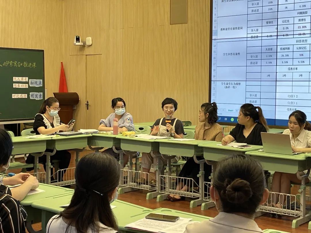 讲座过后,钟莉娜老师借助课堂观察数据对两节课进行课后反思。钟老师指出,两节课均能较好体现阅读导读课和推进课的课型特点,以推理性、创造性问题为主,辅以批判性问题进行思辨,同时立足文本,通过问题链的设置,撬动学生的思维,有侧重地发展学生的高阶思维。