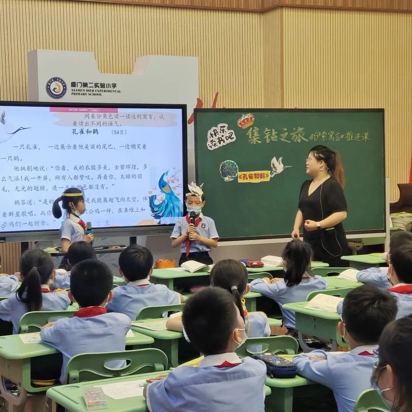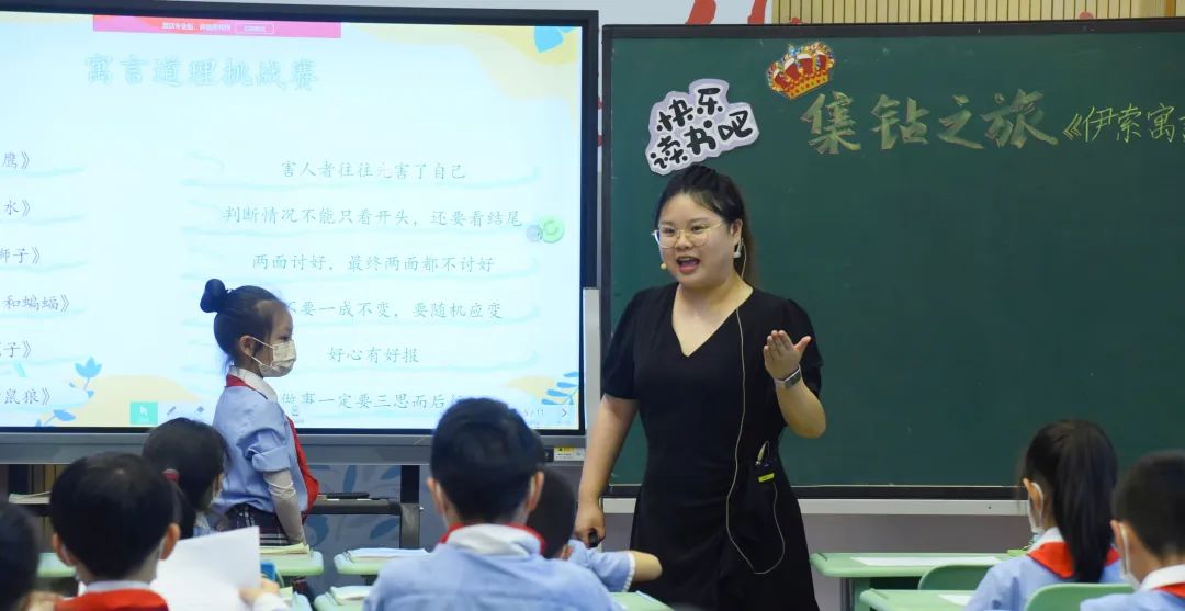 “孩子们,神奇有趣的集钻之旅开始啦,谁会是我们的寓言大王呢?”闪闪发亮的五彩钻石吸引了在场孩子们的目光。这是刘丹鸿老师带来的《伊索寓言》整本书导读课。