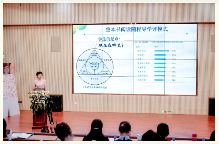思明区教师进修学校教研员蔡维真作以“技术赋能,评导嵌套整本书阅读——以统编教材“快乐读书吧”为例”专题讲座。