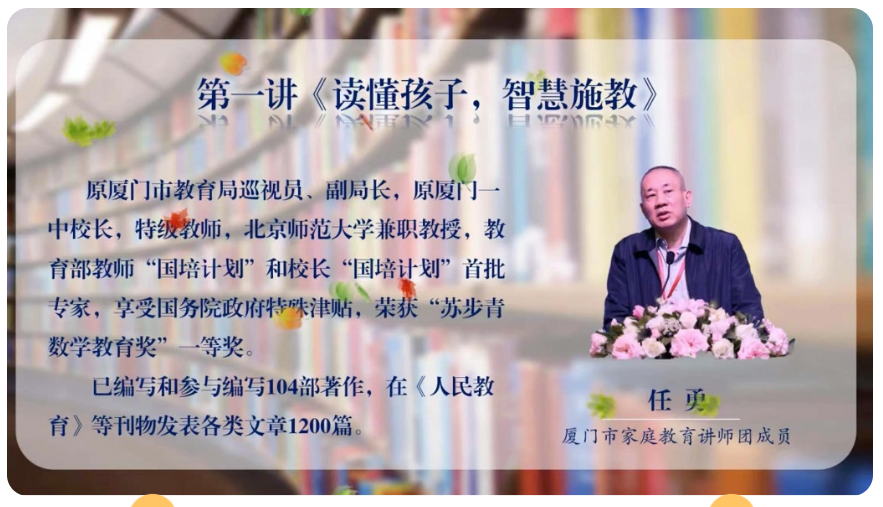 2022年厦门市“家校共育立德树人”工作推进会暨中小学家庭教育讲堂启动仪式在厦门一中举行。在启动仪式上,“厦门市中小学家庭教育讲堂”正式揭幕,并将从3月开始每月举办一期家庭教育讲座,作为厦门教育界领头人的任勇老师自然是首当其冲,以《读懂孩子,智慧施教》为题带来了首场讲座。