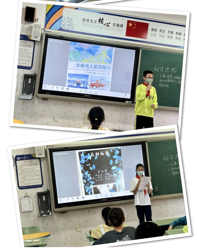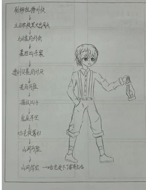 在深入把握人物形象的基础上,六年级的同学们又围绕“历险小说情节中的秘密”展开探究,发现“情节嵌套模式”与“冲突”,从而学习《汤姆·索亚历险记》的独特表达方式,有的独立创编,有的以小组为单位合作,创编属于自己的历险小说。