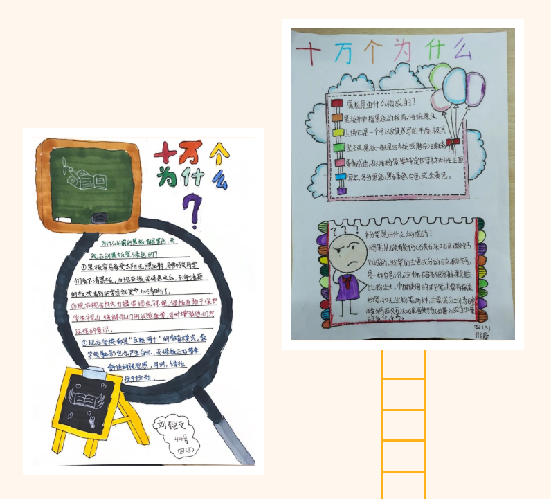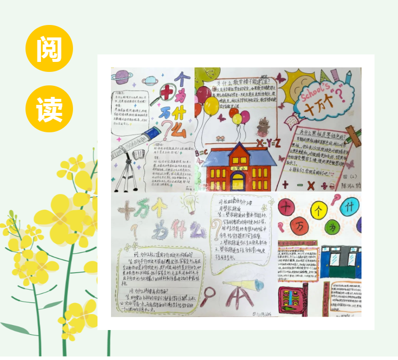 在阅读后,同学们留心观察班级,提出自己的“十万个为什么”,模仿书中“环环追问”的写法,合作编写属于班级版《十万个为什么》!学生通过这次项目式学习,不仅能够走进科普文的世界,发现理趣兼容的特点,明白书中的“十万个为什么”,还能将触角延伸到生活,在探索中成长,提升科学素养。