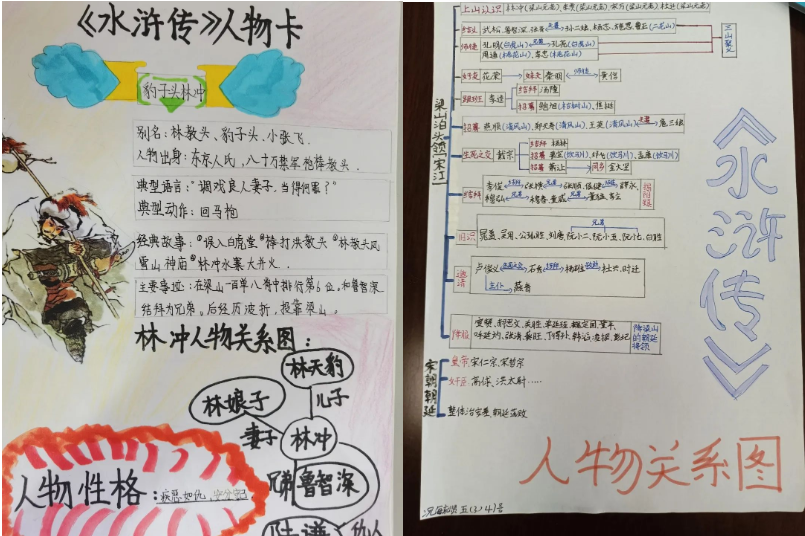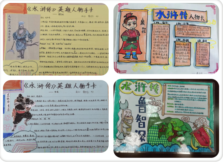 成长的路上少不了榜样的引领。五年级围绕《水浒传》整本书阅读,聚焦英雄人物展开项目式学习。如何演好“水浒英雄”?“水浒英雄人物”手卡应运而生,图文并茂,彰显学生对英雄的理解。