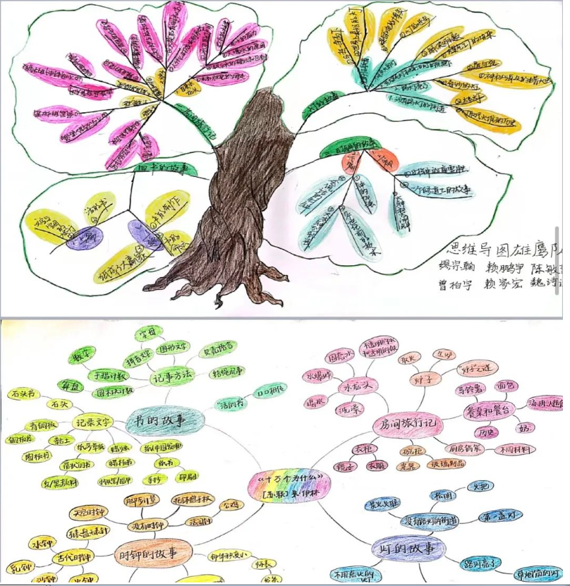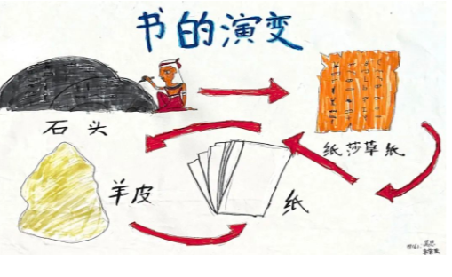 四年级的学生逐渐从形象思维过渡到抽象思维,他们通过阅读米·依琳的《十万个为什么》,在自主了解科学知识,感受科学的奇妙之后,开展项目式学习。孩子们利用思维导图梳理《环屋旅行记》的六大站点,用画图的形式梳理事物的发展演变历程,并尝试动手做小实验,还原探究过程。