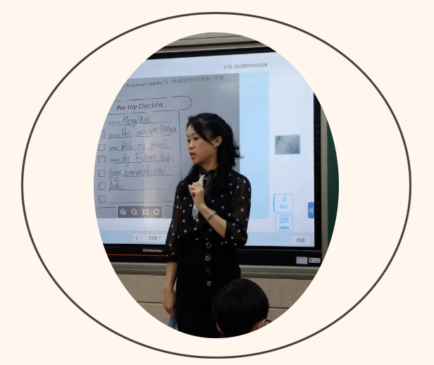 第二节课由黄舒梅老师带来的五年级下册Module 10 Unit1 What did you put in your bag? 该节课老师坚持让学生围绕真实情境和真实问题,激活已知,参与到指向主题意义探究的语言学习和运用互动中来。通过引入本班学生暑假出行计划调查表的数据,由此引发学生思考自己应该如何做好旅行准备。本节课活动层层递进,从学习理解Daming的旅行准备,并以转述Daming的旅行准备作为应用实践,最后引领学生在知识中迁移创新,制作自己的旅行前清单,并同桌互动评价对方是否准备好,从而建构本课的主题意义:Prepare well. Happiness is double.