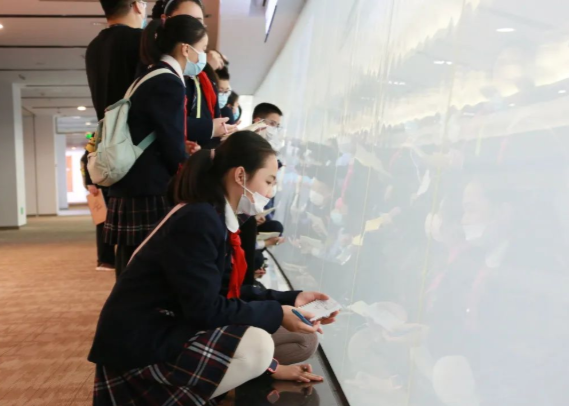 出了控制室,同学们来到一面荣誉墙前,墙上挂满了锦旗,很多锦旗都是普通市民送给车站工作人员的,每面锦旗背后都有着让人为之动容的故事。工作人员介绍了其中一面锦旗的故事:这面锦旗是送给一位在地铁工作的普通保洁员。那位保洁员在一次清理车厢时捡到一个手套,以为很普通,却发现手套里面藏有600元钱,她马上把手套和钱都交给了单位主管。后来在工作人员的帮助下,最终找到了失主。那是一位低保老人,600元是他刚领取的低保金,老人非常感动,为感谢保洁员这种拾金不昧的品行,老人送来了锦旗。