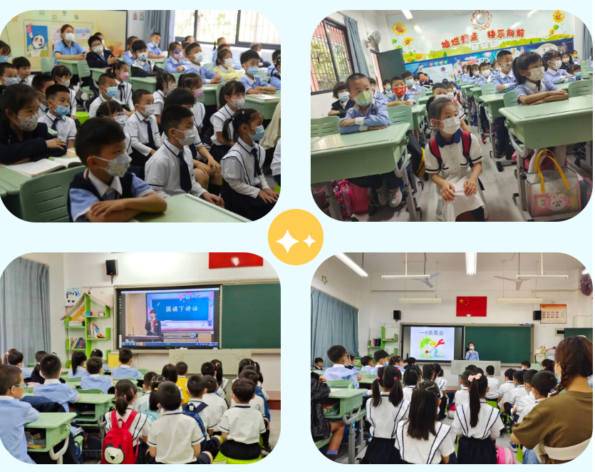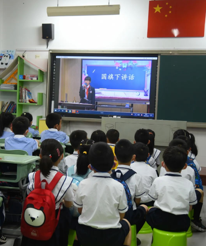2022年5月23日上午,六所幼儿园的小朋友走进厦门第二实验小学展城校区,走进班级,摇身一变,成了一名“小学生”,和哥哥姐姐们一起参加庄严而隆重的升旗仪式,倾听督导队员的反馈,还观看了各具班级特色的雏鹰假日小队视频。升旗仪式结束后,各班精彩的微晨会分享,深深吸引着幼儿园小朋友们。瞧,小朋友们端正的坐姿,专注的眼神,可爱的笑脸都写满了对小学生活的向往。