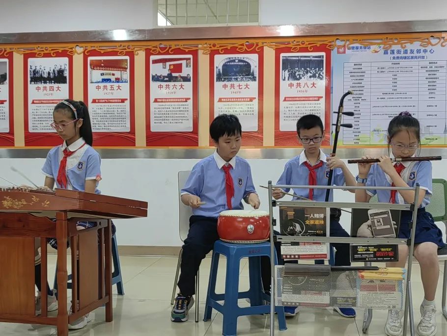 在开场民乐合奏《权御天下》的带领下,现场观众们仿佛走进了群雄逐鹿的三国时代。三弦独奏《登鹳雀楼》穿越时空,意境悠远。童声合唱贵州民歌《摘菜调》让我们看到了美好生活的喜悦。