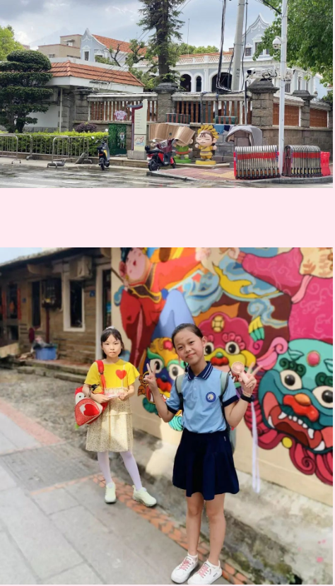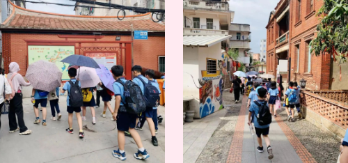 走进历史悠久的大社村,蜿蜒的小路带着同学们慢慢融入这静谧安详的古村。这里是古集美的发祥地,是厦门最有故事的老街之一;这里也是华侨领袖陈嘉庚的故乡,嘉庚精神由此走出。时光在这里留下了浓厚的历史印记,走过白石绿瓦的嘉庚故居、庄严肃静的陈氏宗祠、归国侨民建造的红砖番楼,走在这富有年代感的街道有一种时光穿梭的感觉,石板路像一本历史书,记录着这里的岁月变迁,沉淀下来的永远是一份爱国爱乡的赤子之情。