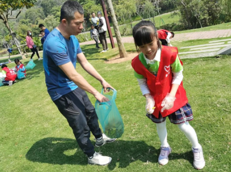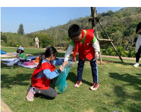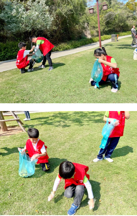 “纸上得来终觉浅,绝知此事要躬行”,孩子们将激动的心情转化为“护绿”的动力,4人一组不惧日晒,把上李水库公园的落叶、垃圾用双手拾得一干二净。