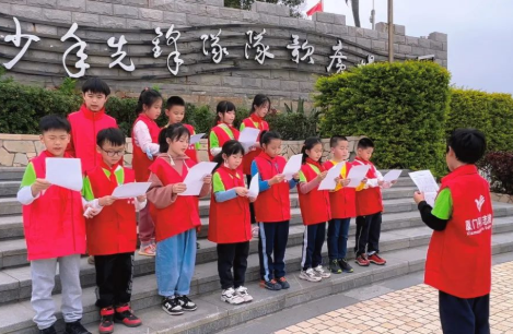 “净滩”小组来到观音山海滩少先队歌广场。大海是生命的摇篮,碧海金沙真是让人心旷神怡啊!