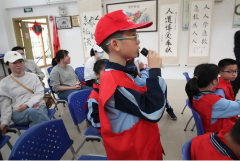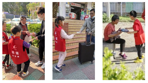 孩子们向沿街店家、路人宣传垃圾分类知识,并分发宣传单和小扇子。