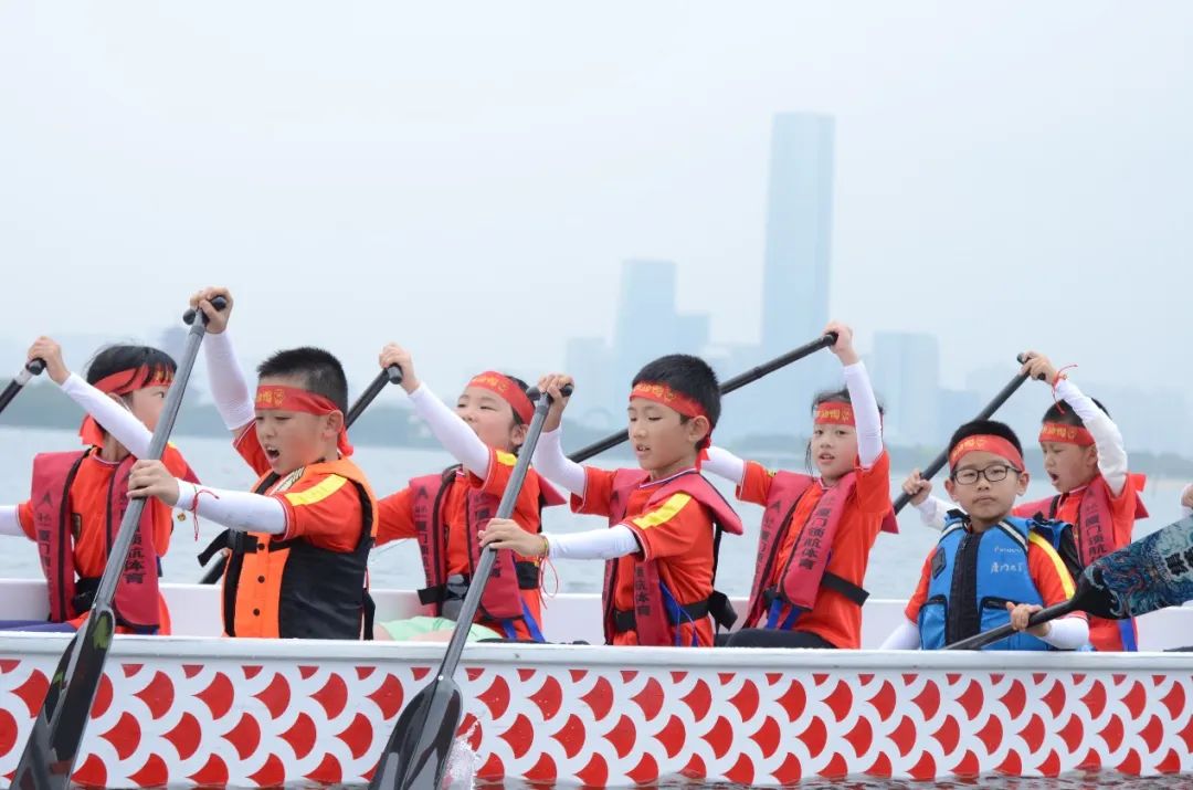 龙舟赛前的划桨练习孩子们格外专注与认真,为了能够更好地操桨前进,在工作人员的生动讲解与指导下,孩子们握着船桨,有板有眼、一丝不苟地练习握桨方法、船上坐姿、集体配合等划龙舟的基本要领。