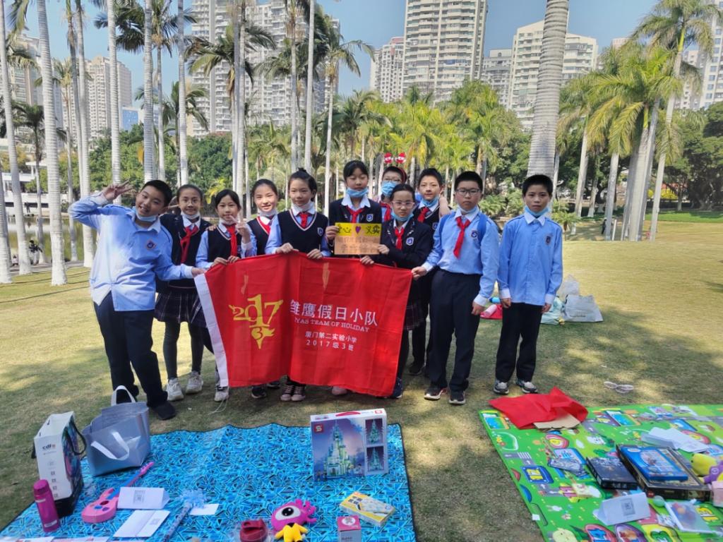 为延续关爱“星儿”的传统,向社会作出自己力所能及的贡献,来自厦门第二实验小学总校五3中队的同学们利用周末时间在莲花公园举行了一场充满爱心的“关爱星儿”义卖活动。