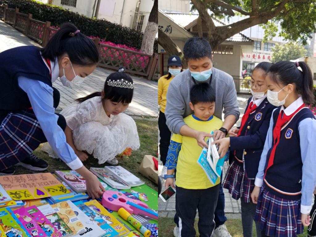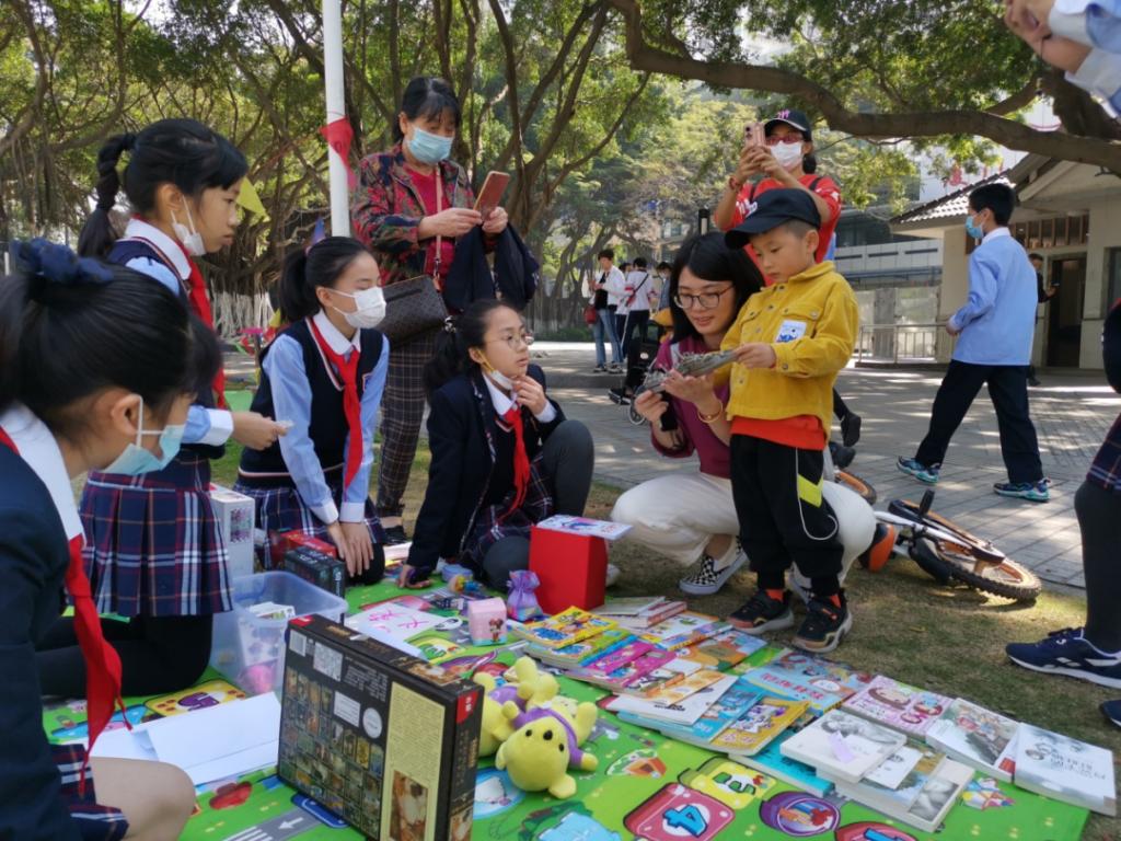 同学们都为这次活动做了充分的准备,早早地来到了义卖地点,戴好红领巾和口罩,铺开地垫,摆放好自己心爱的各种玩具、手工艺品、书籍、学习用品,五3爱心义卖跳蚤市场开张了!
