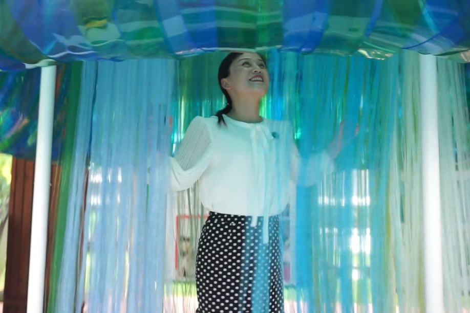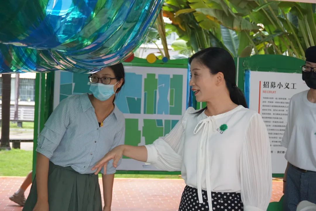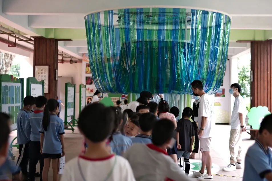 来自新媒体机构的SeeekLab团队的姐姐介绍说:这个大树叫Hi Tree,它是一棵会“说话”的大树。期待着同学们走进它,来到它的树荫下同它对话。它想传递一种语言,那就是重复,重复的语言与动作能让我们内心安定,就像星星的孩子一样。