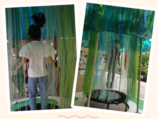 Hi Tree有着像榕树一样长长的“根须”,与众不同的是:当小伙伴们踏上蹦床,用轻轻的跳跃与它“共舞”时,它会舞动起蓝绿相间的根须,和着鸟儿的鸣唱予以回应。