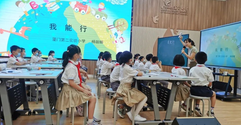 工作室成员厦门第二实验小学总校杨丽娜老师为莲前小学二年2班的学生带来了一节生动有趣的道德与法治课《我能行》。课堂伊始,杨老师鼓励学生自我介绍的方式中发现自身优点,又组织学生互送“大拇哥”,点赞同伴,确立自信心;接着在学生的分享中,老师帮助梳理归纳“我不行”的原因;然后创设生活种情境,引导学生结合自身生活经验,小组讨论帮助他们解决问题的方法,并在小组展示交流互动中深化学生认知和体验;最后在儿歌声中,学生进一步巩固认知,获得情感认同。整节课环节层层相扣,杨老师耐心倾听学生发言,并循循善诱,精彩的教学使学生走进课堂和走出课堂确实有所收获和变化。