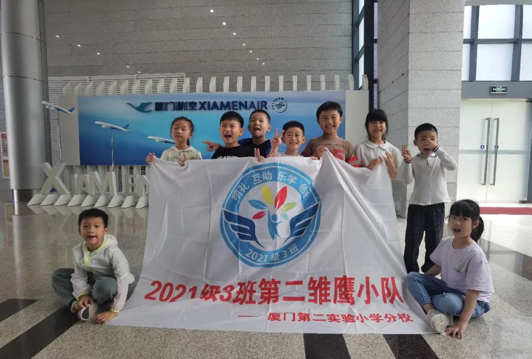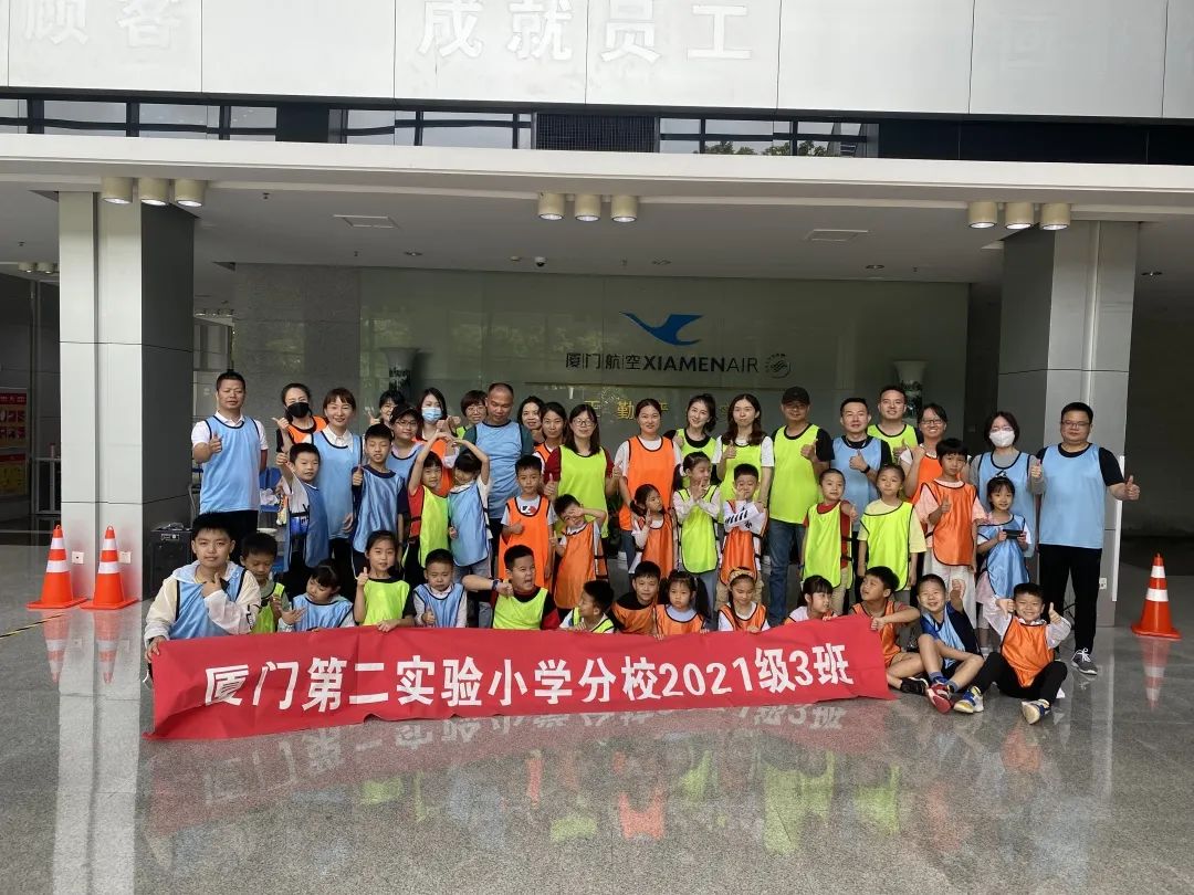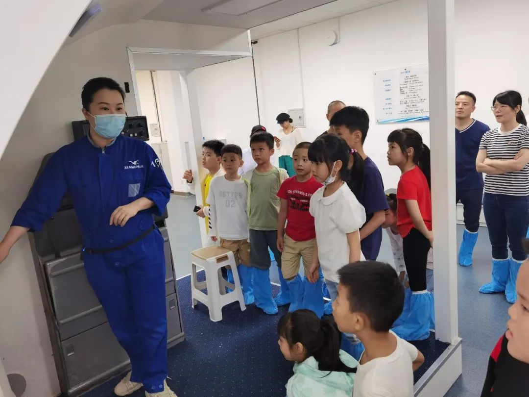 为了让孩子们在暑期能走出家门,广泛接触社会,开阔视野,增长见识,2022年暑期,厦门第二实验小学展城校区2021级3班雏鹰假日小队的第一波集体活动,是由家委们组织孩子们到厦门航空基地参观航空模拟机舱,近距离地体验航空文化。