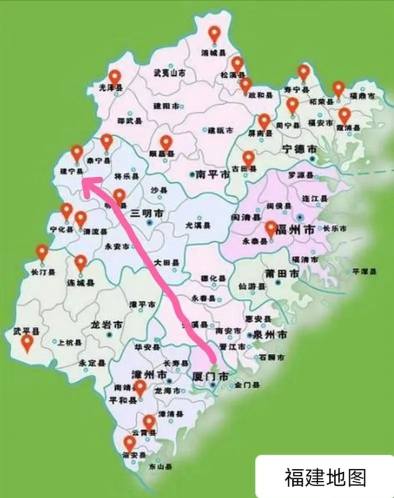建宁县是福建省三明市下辖县,地处闽赣边界、武夷山麓中段,地质结构形成于26亿年前、由茫茫海底抬升为陆地并逐步向周边延伸,是福建省最古老的一块陆地。福建“母亲河”闽江发源于此,素有“闽地之母、闽山之巅、闽水之源”之称,也是著名的中国建莲之乡、黄花梨之乡、无患子之乡和全国杂交水稻制种第一超级大县。