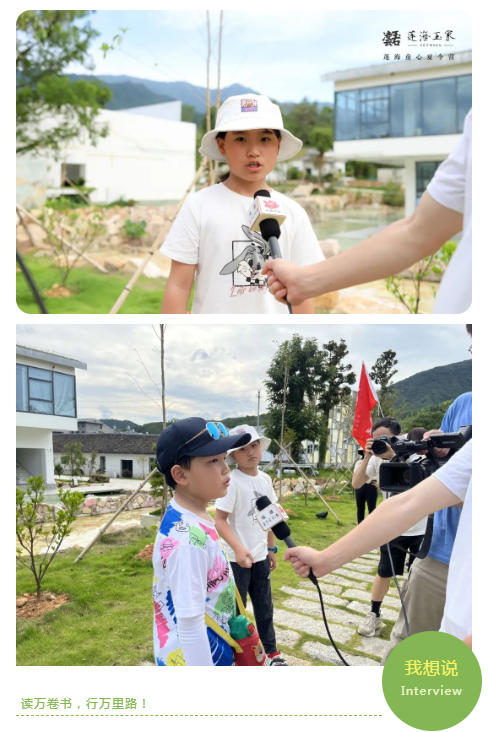 在孩子们的夏令营期间,恰逢当地电视台到景区采风,记者看到远道而来的小客人,抓住机会采访了咱们的小伙伴。