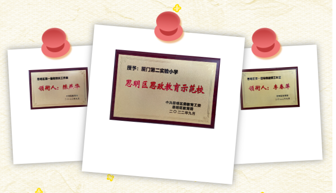 正是因为有这样一群人,同心同德,共育桃李,勤育英才遍神州的厦门二实小在第38个教师节光荣地被评为思政教育示范校。与此同时,陈燕华校长的工作室被评为思明区第一届名校长工作室,李春萍老师的工作室被评为思明区第一届特级教师工作室,学校在管理、学科、思政教育等全方位开花,未来岁月,他们将继续保持这份热爱,再创二实小新辉煌。
