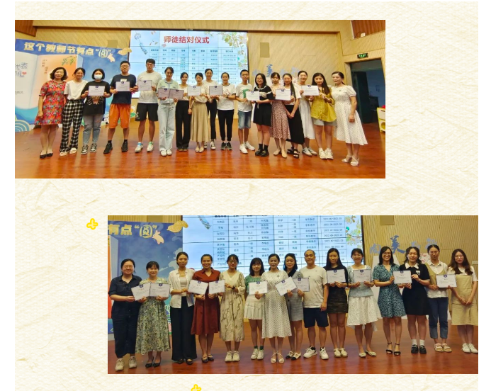 在这个和美的大家庭里,师徒结对这个优良传统代代传承,师傅倾囊相授,徒弟勤勉好学,导师的无私奉献是学校蓬勃发展的巨大推动力。在教师专业成长这条赛道上,老师们双向奔赴,相互成就。叶万东老师、李丽丽老师宣布师徒结对名单,师徒代表上台进行签约、合影。这学年,我校还成立共同体师徒结对,由两个校区和莲前分校的骨干教师形成师徒,共同研讨,共同进步,这是共同体建设愈发紧密的又一重要举措。