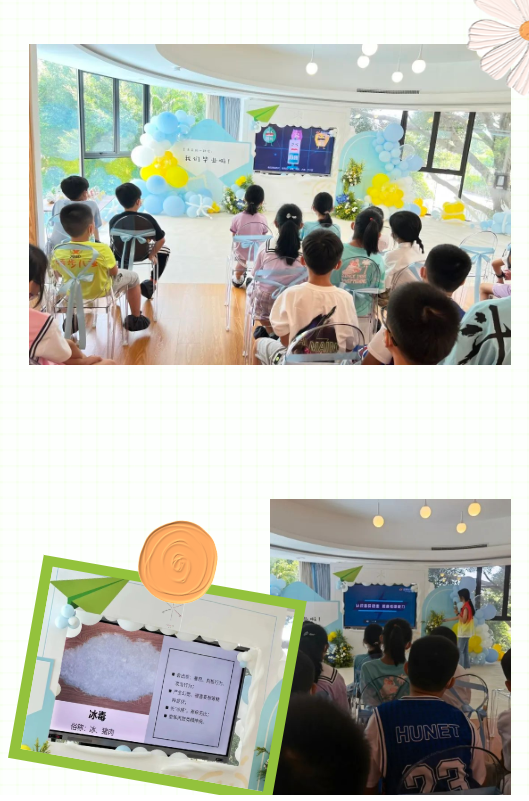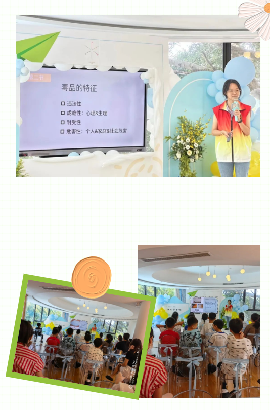 PA社工通过PPT和小视频向同学们讲解毒品特征以及毒品的种类、特点,图文结合的方式让孩子们了解到毒品对于个人及家庭的危害,在孩子们心中种下防毒的种子。