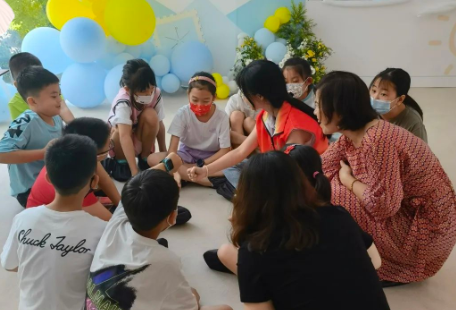 同学们组成了不同的小组围坐一圈,在社工的带领下展示才艺,介绍自己。