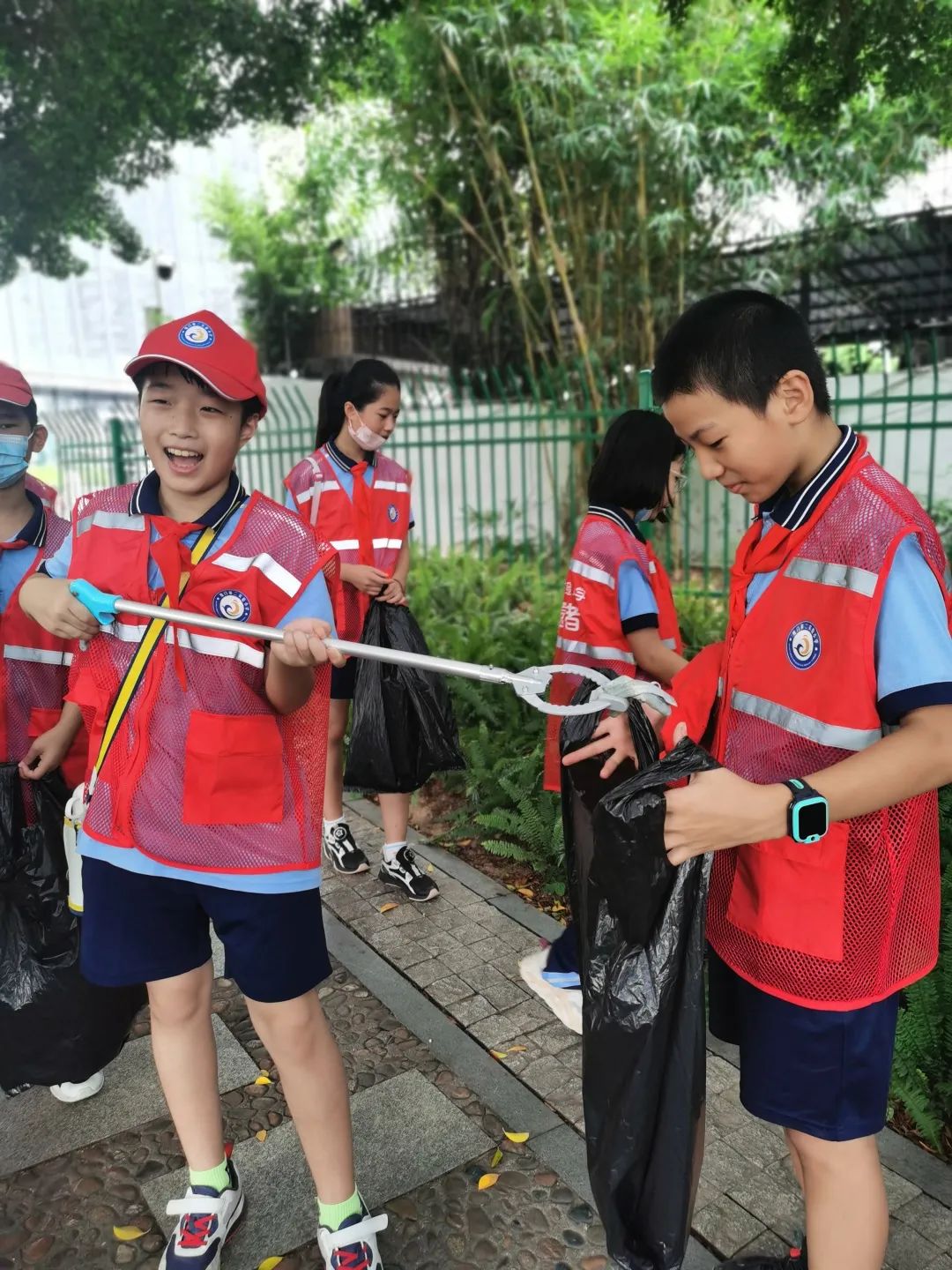 秋天是一个充满希望与收获的季节。在周六的早上,我们聚在校门口,红背心,红帽子,还有鲜艳的红领巾。我们边走边捡,即使垃圾袋空了又满,满了又空,头上汗水无数次从发间滴落,我们也毫不松懈,脸上一直洋溢着丰收的笑容。我们要让社区、公园更加整洁,美丽,舒适。通过这次活动我们不仅仅收获了劳动之乐,同时也很好地锻炼了我们的劳动能力。 ——六1中队 陈勋宇