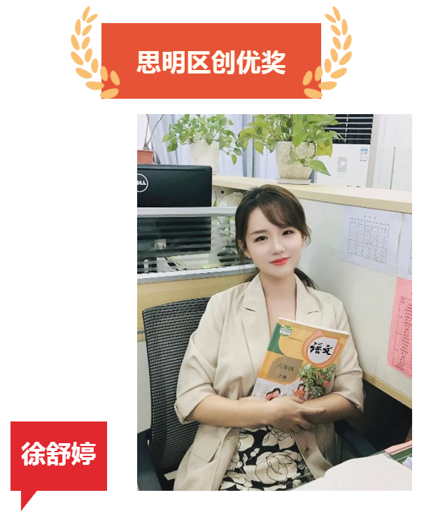 徐舒婷,作为青年教师,她钻研教学,勇于创新。是部优课例,市创新赛三等奖,区技能赛一等奖获得者;所教学生在征文、演讲、主持等比赛中屡获殊荣;开设区级以上公开课十余节,撰写论文和案例十余篇分别或国家、省级奖项;课例、微课等均在各级各类比赛中获奖。被评为思明区青年教学能手、思明区优秀教师、思明区优秀班主任。一份春华,一份秋实,她用脚踏实地的付出,享受每一次突破,享受每一次孩子的成长。