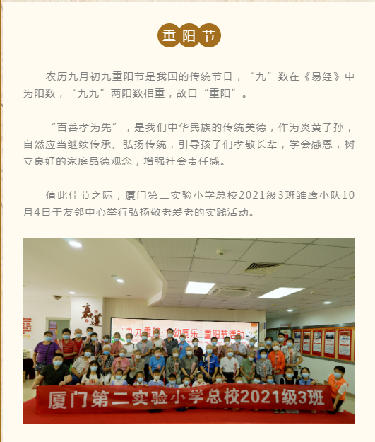 【行·小雏鹰】九九重阳·耆幼同乐——记厦门第二实验小学总校2021级3班重阳节敬老爱老活动