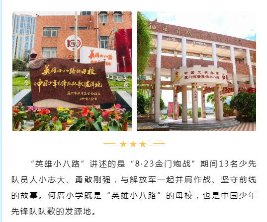“我们是共产主义接班人, 继承革命先辈的光荣传统......”当熟悉的旋律响起,你是否也会想起自己加入中国少先队的那天,这首伴随几代人成长的红色队歌。10月6日,厦门第二实验小学展城校区2021级1班雏鹰小队员们来到英雄小八路纪念馆参观。
