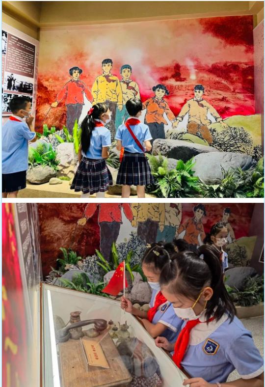 在讲解员声情并茂的讲解中,队员们仿佛回到了当年炮火纷飞的战争年代。大家在这里一遍又一遍地唱响了《中国少年先锋队队歌》,一遍又一遍地重温了中国少年先锋队的精神……生动的场景,真实的人物,真实的故事,大家从中再次看到了"小八路"的高大形象,再次感受"小八路"的崇高精神。